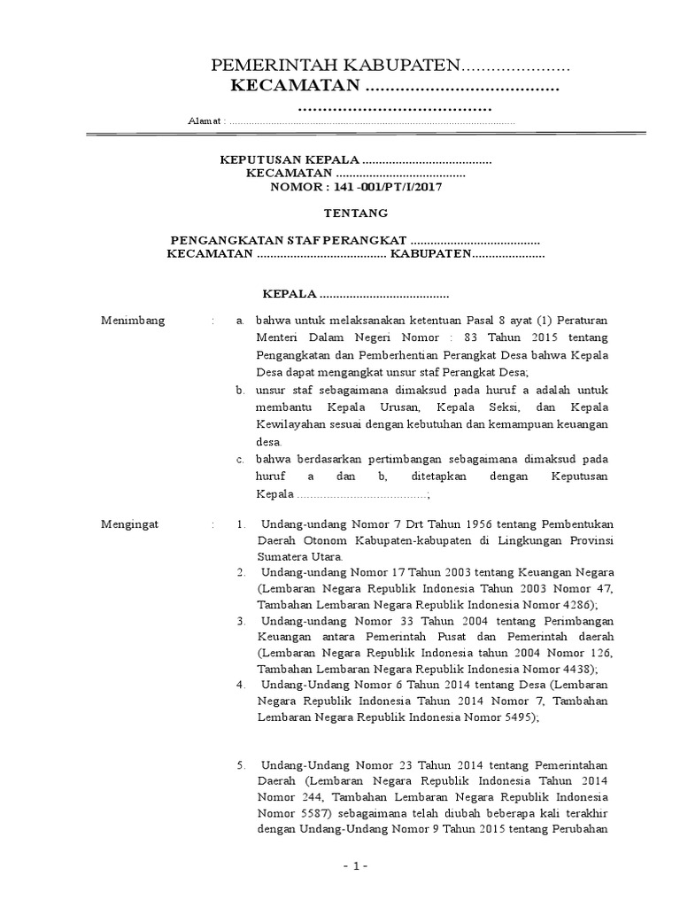 Download doc sk kepala desa tentang pemberhentin perangkat desa download file doc gratis. Bahwa perangkat desa sebagaimana yang dimaksud huruf a dan b, diatas berdasarkan keputusan kepala desa. Bahwa untuk kelancaran pelaksanaan administrasi pemerintahan desa dan meningkatkan pelayanan kepada masyarakat desa, perlu mengangkat, sekretrasis desa, kepala seksi dan kepala urusan desa, b. Download contoh sk pengangkatan operator sekolah terbaru format format 450 x 640 pixel. Selanjutnya dalam pengelolaan keuangan desa, kepala seksi (kasi) pemerintahan desa bertugas sebagai pelaksana kegiatan anggaran (pka) dalam struktur pelaksana pengelolaan keuangan desa (ppkd) sesuai bidang tugasnya.